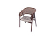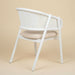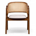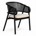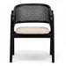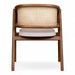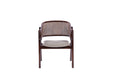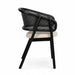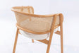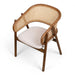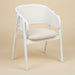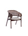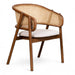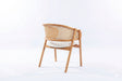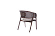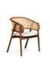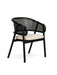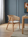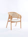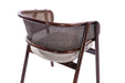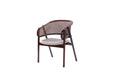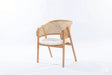 Tasarım Lena, akıcı hatlarla şekillenen kavisli sırt formu ve doğal hazeran dokuma yüzeyi, ürüne hafif ve nefes alan bir karakter kazandırır. Koyu tonlu ahşap gövde, tasarıma güçlü ve dengeli bir duruş katarken; yumuşak oturum yüzeyi konforu tamamlar.